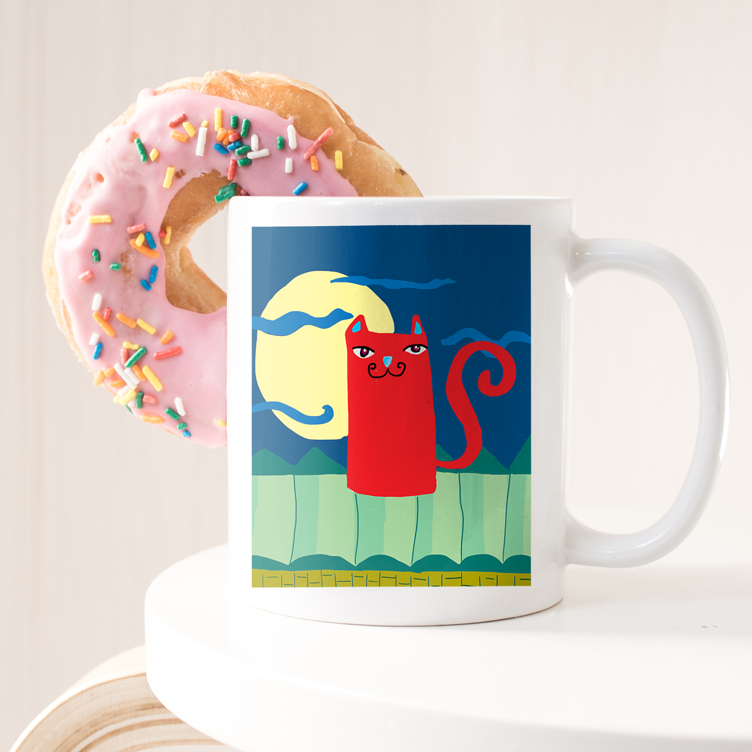 Microwavable, certified food-grade white ceramic mug packed in a box with a side window. Capacity: 330 ml, 11 oz;