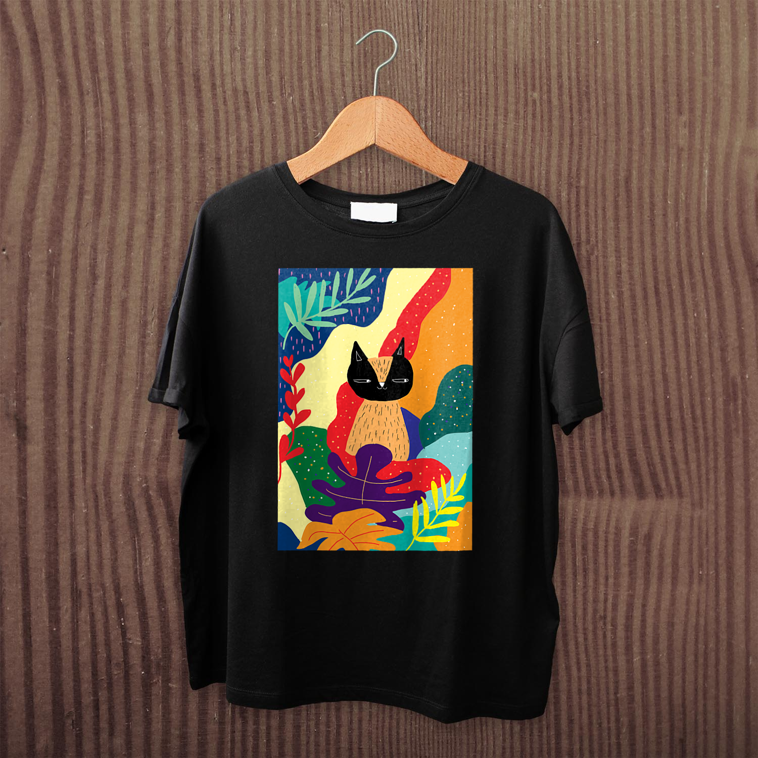 Unisex t-shirt black and orange cat
